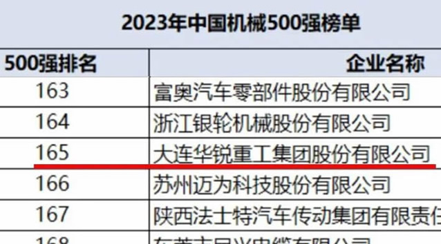 大連重工位列中國機(jī)械500強(qiáng)企業(yè)第165位