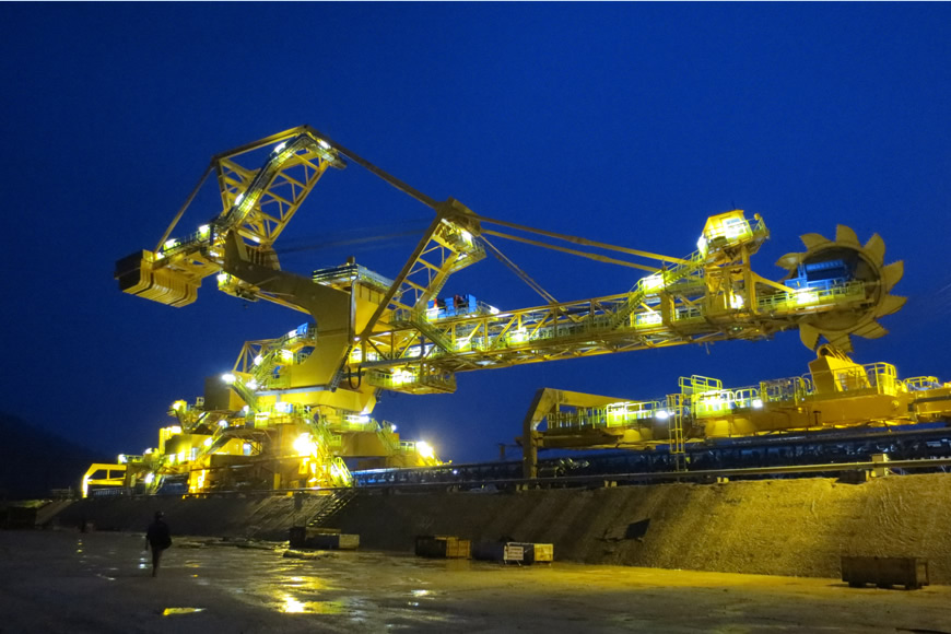堆取料機是一種連續(xù)、高效的散料裝卸機械,廣泛應用于港口、冶金、礦山、電力、煤化工等領域,可實現煤炭、礦石等散狀物料的堆、取連續(xù)作業(yè)。大連重工可研制額定能力100~15000t/h各種型式的堆取料機。